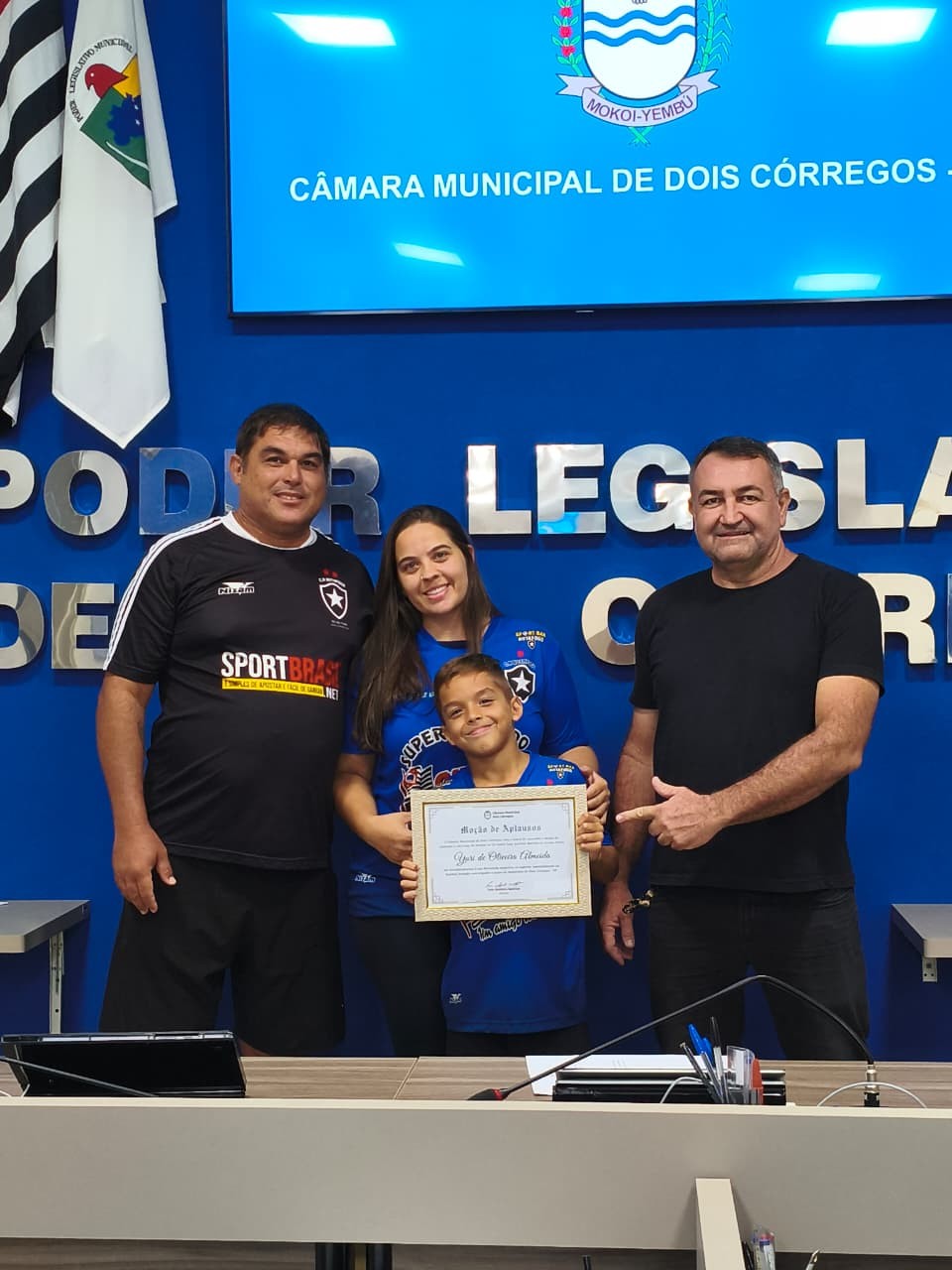 Nesta quinta-feira, 26/02, a Câmara Municipal teve a honra de entregar uma Moção de Aplausos ao Jovem Atleta Yuri de Oliveira Almeida em reconhecimento à sua destacada trajetória no esporte, especialmente no futebol, levando com orgulho o nome do município de Dois Córregos - SP.